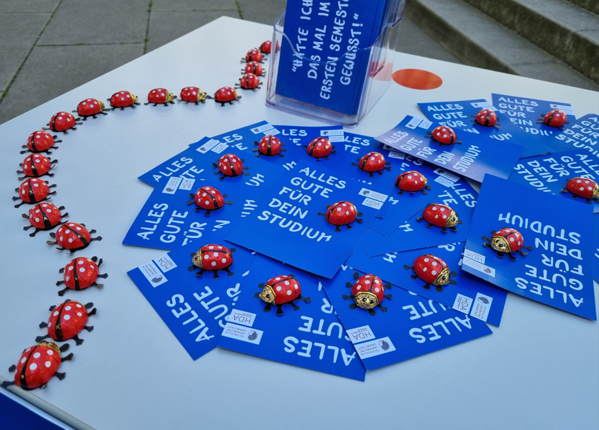 To thank the tutors for their commitment, the HDA staff set up a booth in the reading courtyard of the ULB, where the tutors were able to get some free chocolate and coffee for their lunchbreak and inform themselves on the newest offers of the central service facility.
